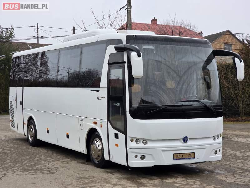 : lodówka, fotele odchylane, oświetlenie indywidualne, nawiewy dyszowe, siateczki, ABS, ASR, tempomat, retarder, podnóżki, stoliczki, mikrofon, klimatyzacja, radio, centralny zamek, podwójne szyby boczne, wspomaganie kierownicy, elektryczne lusterka, DVD, ogrzewanie stacjonarne
