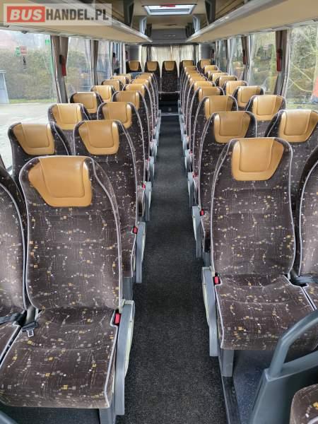 : lodówka, fotele odchylane, oświetlenie indywidualne, nawiewy dyszowe, siateczki, ABS, ASR, tempomat, retarder, podnóżki, stoliczki, mikrofon, klimatyzacja, radio, centralny zamek, podwójne szyby boczne, wspomaganie kierownicy, elektryczne lusterka, DVD, ogrzewanie stacjonarne