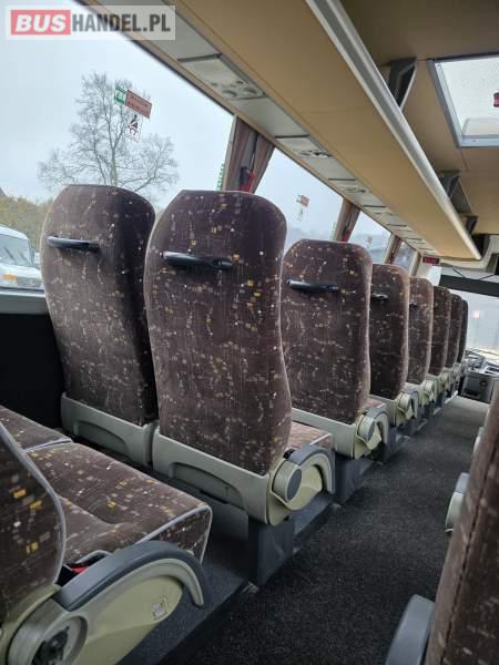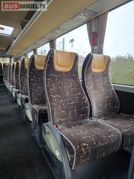 : lodówka, fotele odchylane, oświetlenie indywidualne, nawiewy dyszowe, siateczki, ABS, ASR, tempomat, retarder, podnóżki, stoliczki, mikrofon, klimatyzacja, radio, centralny zamek, podwójne szyby boczne, wspomaganie kierownicy, elektryczne lusterka, DVD, ogrzewanie stacjonarne