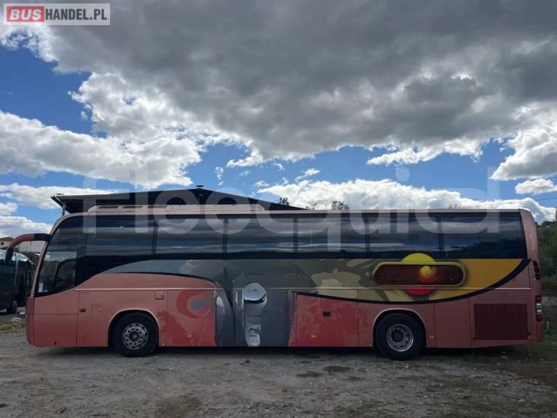 : WC, lodówka, fotele odchylane, ABS, ASR, retarder, CD, podnóżki, stoliczki, mikrofon, klimatyzacja, radio, DVD, ogrzewanie stacjonarne