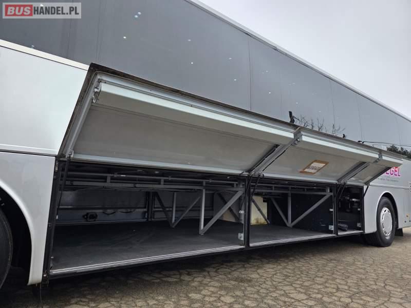 : lodówka, caffebar, fotele odchylane, oświetlenie indywidualne, nawiewy dyszowe, siateczki, ABS, ASR, tempomat, retarder, podnóżki, stoliczki, mikrofon, klimatyzacja, radio, sejf, centralny zamek, podwójne szyby boczne, wspomaganie kierownicy, elektryczne lusterka, ogrzewanie stacjonarne