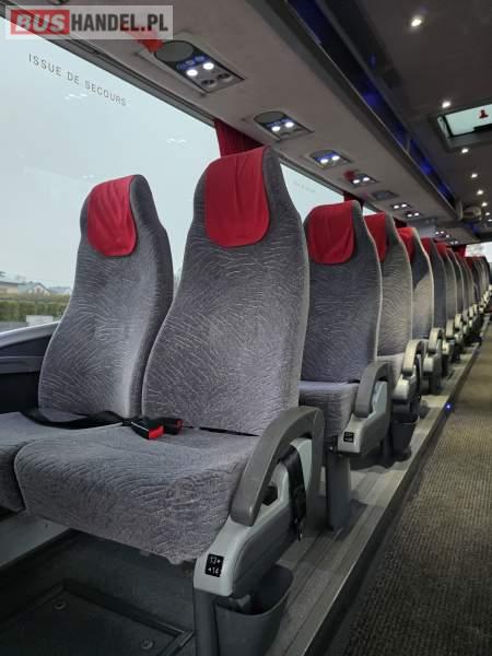 : lodówka, caffebar, fotele odchylane, oświetlenie indywidualne, nawiewy dyszowe, siateczki, ABS, ASR, tempomat, retarder, podnóżki, stoliczki, mikrofon, klimatyzacja, radio, sejf, centralny zamek, podwójne szyby boczne, wspomaganie kierownicy, elektryczne lusterka, ogrzewanie stacjonarne