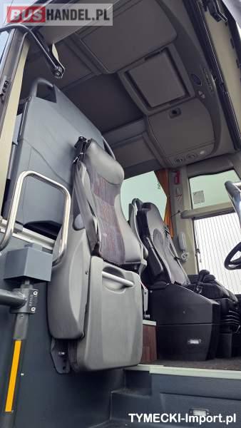 : video, lodówka, kabina sypialna, fotele odchylane, oświetlenie indywidualne, nawiewy dyszowe, siateczki, ABS, ASR, tempomat, retarder, CD, podnóżki, stoliczki, mikrofon, klimatyzacja, radio, regulacja wysokości nadwozia, centralny zamek, podwójne szyby boczne, wspomaganie kierownicy, elektryczne lusterka, DVD, ogrzewanie stacjonarne, ESP