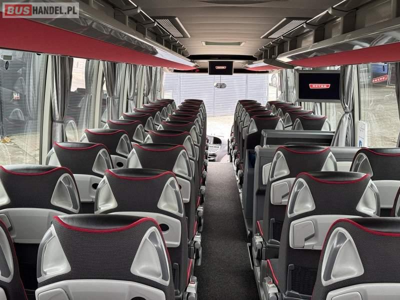 : WC, lodówka, caffebar, kabina sypialna, fotele odchylane, oświetlenie indywidualne, nawiewy dyszowe, siateczki, ABS, ASR, tempomat, retarder, podnóżki, stoliczki, mikrofon, klimatyzacja, radio, sejf, regulacja wysokości nadwozia, centralny zamek, podwójne szyby boczne, wspomaganie kierownicy, elektryczne lusterka, fotele odchylane i rozsuwane, DVD, ogrzewanie stacjonarne, ESP