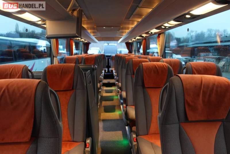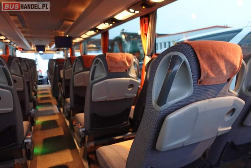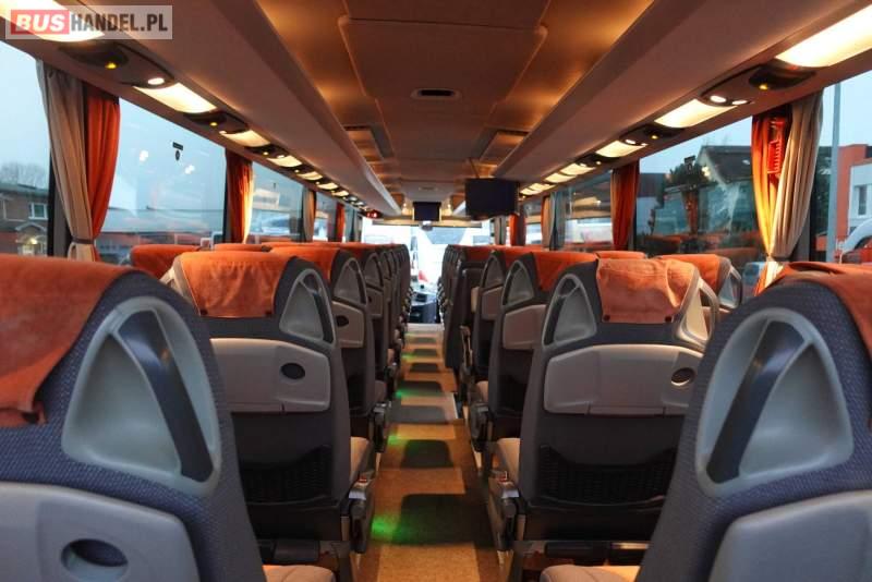 : video, WC, lodówka, caffebar, kabina sypialna, fotele odchylane, oświetlenie indywidualne, nawiewy dyszowe, siateczki, ABS, ASR, tempomat, retarder, nawigacja, CD, podnóżki, stoliczki, klimatyzacja, radio, wyświetlacz matrix, regulacja wysokości nadwozia, centralny zamek, podwójne szyby boczne, wspomaganie kierownicy, elektryczne lusterka, fotele odchylane i rozsuwane, DVD, ogrzewanie stacjonarne, hak holowniczy, ESP