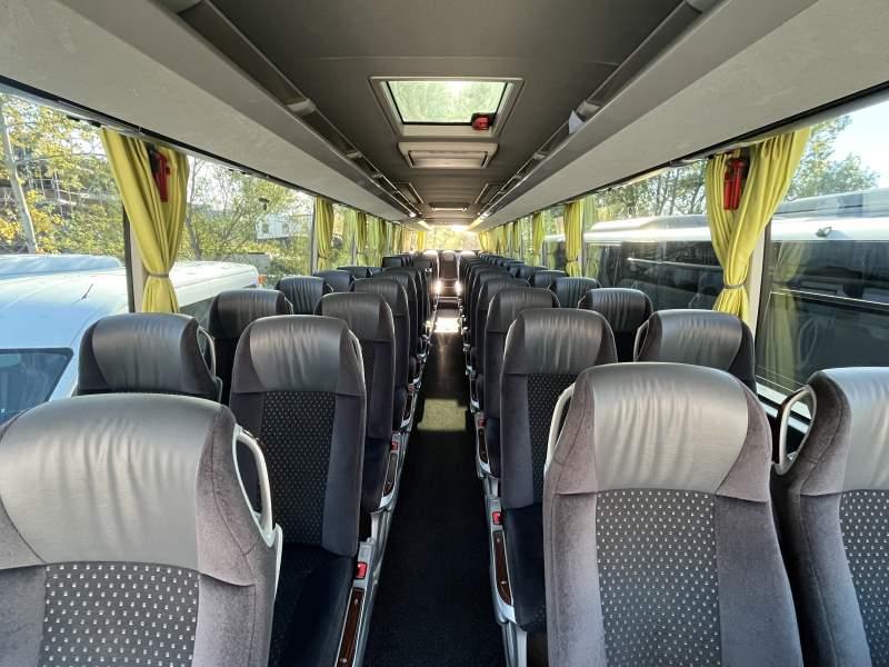 : WC, lodówka, caffebar, fotele odchylane, oświetlenie indywidualne, nawiewy dyszowe, siateczki, ABS, ASR, tempomat, retarder, nawigacja, CD, podnóżki, stoliczki, mikrofon, klimatyzacja, radio, regulacja wysokości nadwozia, centralny zamek, podwójne szyby boczne, wspomaganie kierownicy, elektryczne lusterka, aluminiowe felgi, fotele odchylane i rozsuwane, DVD, ogrzewanie stacjonarne, ESP