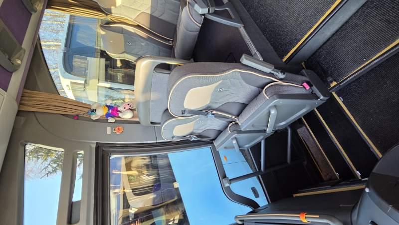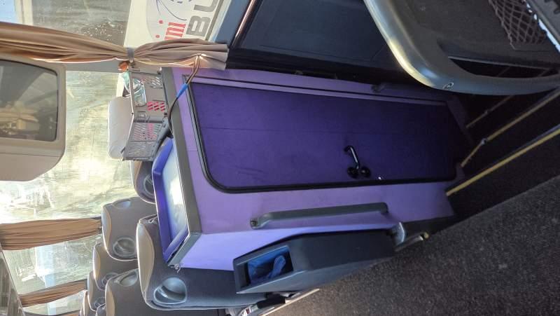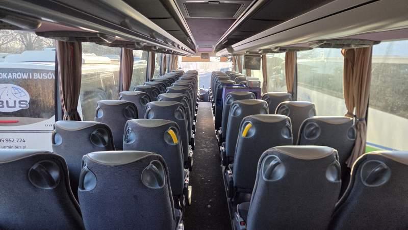 : video, WC, lodówka, fotele odchylane, oświetlenie indywidualne, nawiewy dyszowe, ABS, ASR, tempomat, retarder, CD, mikrofon, klimatyzacja, radio, regulacja wysokości nadwozia, centralny zamek, podwójne szyby boczne, wspomaganie kierownicy, elektryczne lusterka, fotele odchylane i rozsuwane, DVD, ogrzewanie stacjonarne, ESP