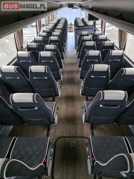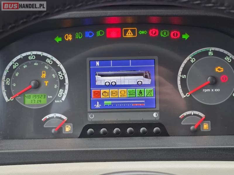 : WC, lodówka, caffebar, kabina sypialna, oświetlenie indywidualne, nawiewy dyszowe, siateczki, ABS, ASR, tempomat, retarder, podnóżki, stoliczki, mikrofon, klimatyzacja, radio, sejf, regulacja wysokości nadwozia, centralny zamek, podwójne szyby boczne, wspomaganie kierownicy, elektryczne lusterka, fotele odchylane i rozsuwane, DVD, ogrzewanie stacjonarne, ESP