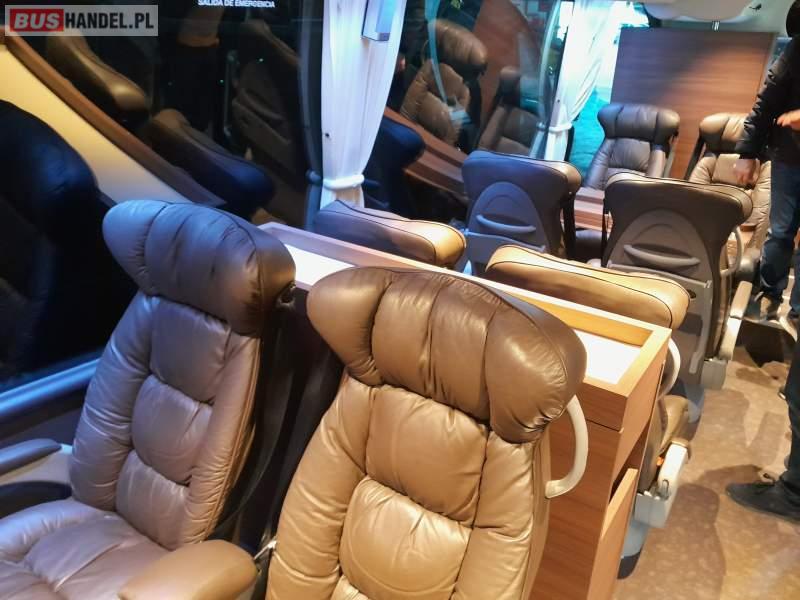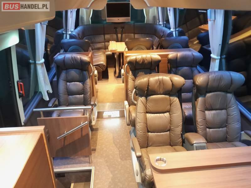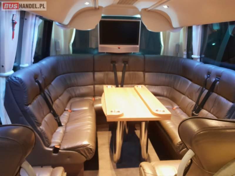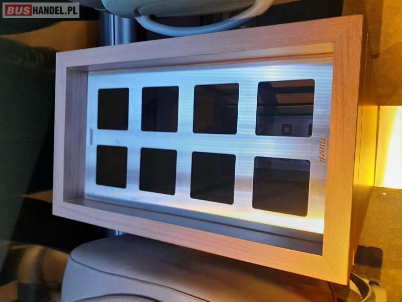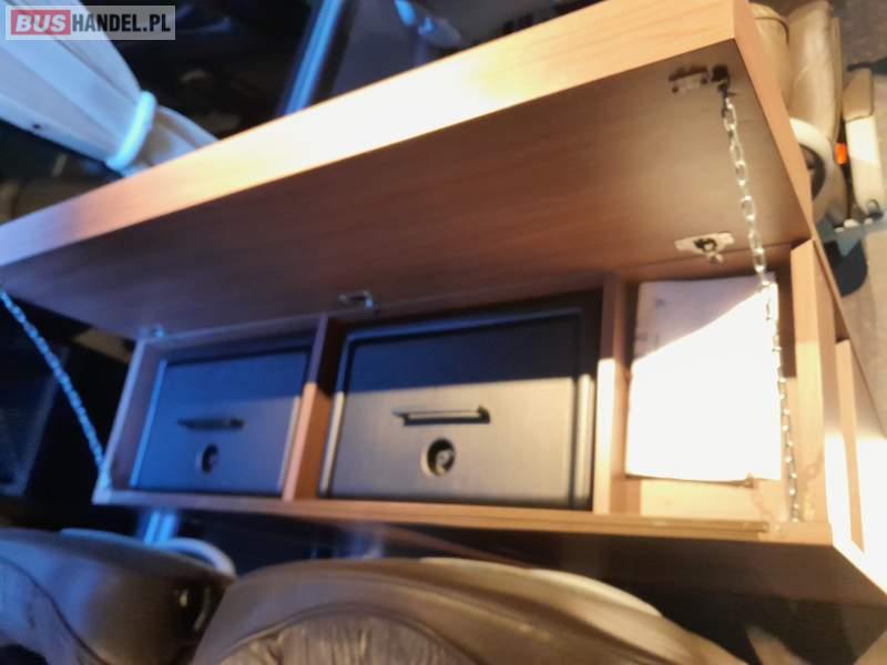 : video, lodówka, caffebar, fotele odchylane, oświetlenie indywidualne, nawiewy dyszowe, ABS, ASR, tempomat, retarder, nawigacja, CD, podnóżki, stoliczki, mikrofon, klimatyzacja, radio, kuchenka mikrofalowa, regulacja wysokości nadwozia, centralny zamek, wspomaganie kierownicy, elektryczne lusterka, fotele odchylane i rozsuwane, DVD, ogrzewanie stacjonarne, ESP