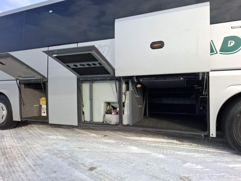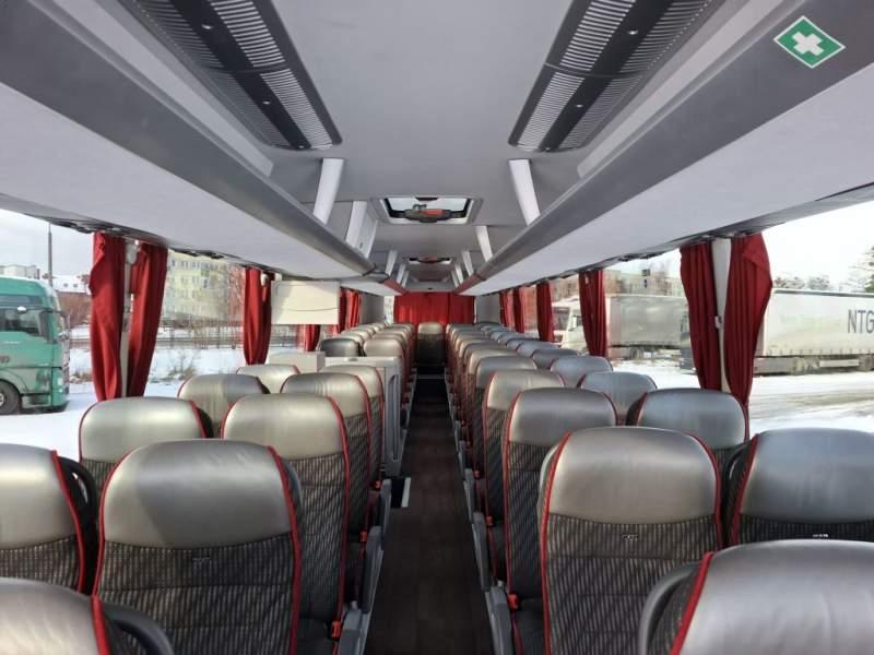 : WC, lodówka, caffebar, oświetlenie indywidualne, nawiewy dyszowe, siateczki, ABS, ASR, tempomat, retarder, nawigacja, CD, podnóżki, stoliczki, mikrofon, klimatyzacja, radio, sejf, regulacja wysokości nadwozia, centralny zamek, podwójne szyby boczne, wspomaganie kierownicy, elektryczne lusterka, fotele odchylane i rozsuwane, DVD, ogrzewanie stacjonarne, hak holowniczy, ESP