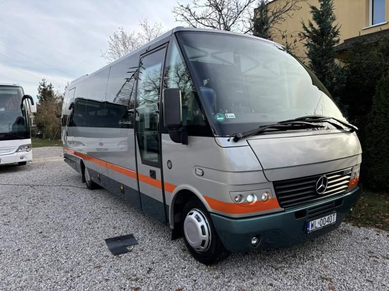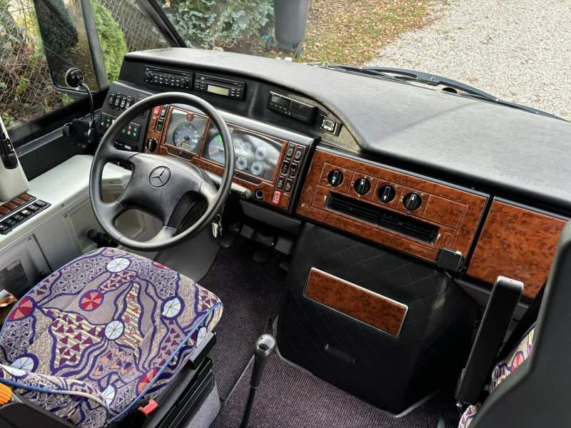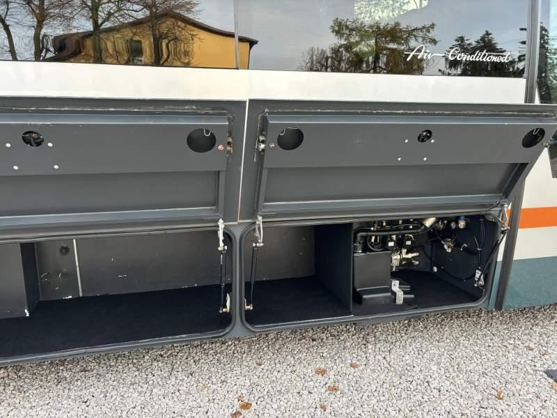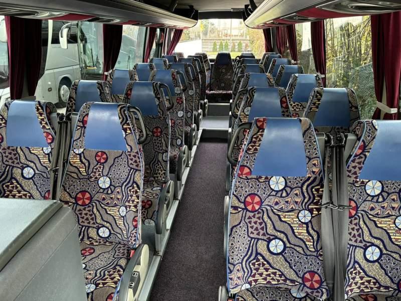 : lodówka, oświetlenie indywidualne, nawiewy dyszowe, siateczki, ABS, ASR, tempomat, retarder, CD, podnóżki, stoliczki, mikrofon, klimatyzacja, radio, podwójne szyby boczne, wspomaganie kierownicy, elektryczne lusterka, fotele odchylane i rozsuwane, ogrzewanie stacjonarne, hak holowniczy