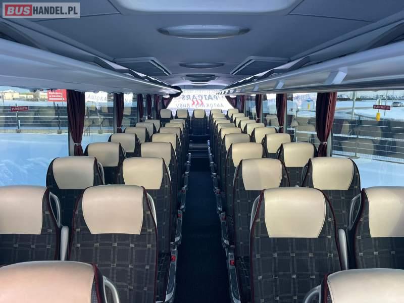 : lodówka, oświetlenie indywidualne, nawiewy dyszowe, siateczki, ABS, ASR, tempomat, retarder, CD, podnóżki, stoliczki, mikrofon, klimatyzacja, radio, sejf, regulacja wysokości nadwozia, centralny zamek, podwójne szyby boczne, wspomaganie kierownicy, elektryczne lusterka, fotele odchylane i rozsuwane, DVD, ESP