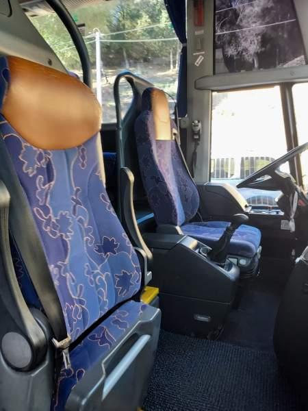 : video, fotele odchylane, oświetlenie indywidualne, ABS, ASR, tempomat, retarder, CD, mikrofon, klimatyzacja, radio, regulacja wysokości nadwozia, centralny zamek, podwójne szyby boczne, wspomaganie kierownicy, elektryczne lusterka, DVD, ogrzewanie stacjonarne