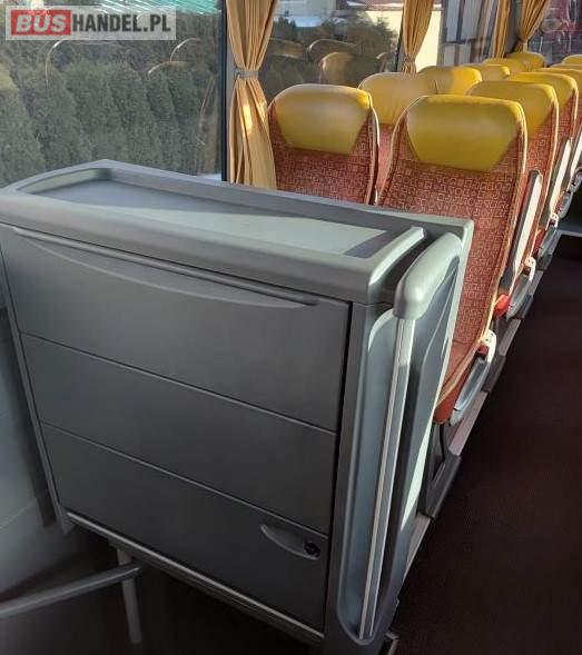 : klimatyzacja, WC, lodówka, caffebar, oświetlenie indywidualne, nawiewy dyszowe, podnóżki, stoliczki, siateczki, ABS, ASR, tempomat, retarder, CD, mikrofon, radio, fotele odchylane i rozsuwane, sejf, regulacja wysokości nadwozia, centralny zamek, podwójne szyby boczne, wspomaganie kierownicy, elektryczne lusterka, ogrzewanie stacjonarne, DVD, ESP