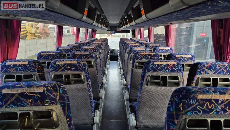 : video, lodówka, fotele odchylane, oświetlenie indywidualne, nawiewy dyszowe, ABS, retarder, mikrofon, klimatyzacja, radio, regulacja wysokości nadwozia, centralny zamek, podwójne szyby boczne, wspomaganie kierownicy, elektryczne lusterka, ogrzewanie stacjonarne