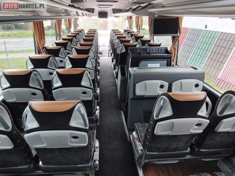 : video, WC, lodówka, caffebar, kabina sypialna, fotele odchylane, oświetlenie indywidualne, nawiewy dyszowe, siateczki, ABS, ASR, tempomat, retarder, CD, podnóżki, stoliczki, fotele nieodchylane, mikrofon, klimatyzacja, radio, sejf, regulacja wysokości nadwozia, centralny zamek, podwójne szyby boczne, wspomaganie kierownicy, elektryczne lusterka, aluminiowe felgi, fotele odchylane i rozsuwane, DVD, ogrzewanie stacjonarne, hak holowniczy, ESP