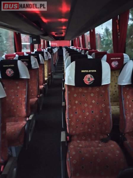 : WC, lodówka, caffebar, kabina sypialna, oświetlenie indywidualne, nawiewy dyszowe, ABS, ASR, tempomat, retarder, CD, stoliczki, mikrofon, klimatyzacja, radio, regulacja wysokości nadwozia, podwójne szyby boczne, wspomaganie kierownicy, elektryczne lusterka, fotele odchylane i rozsuwane, DVD, ogrzewanie stacjonarne, ESP