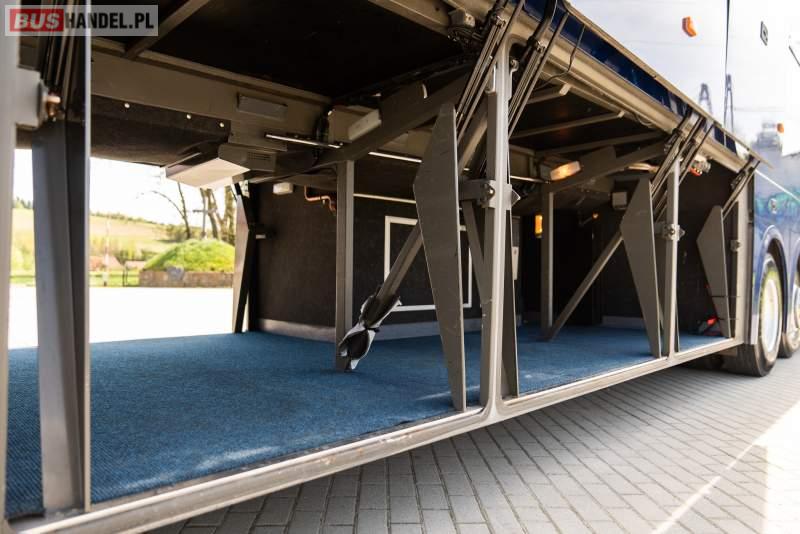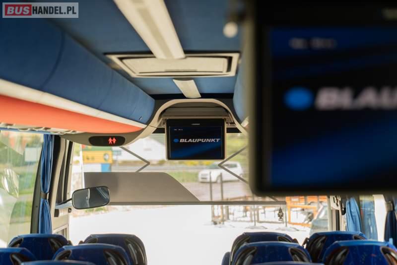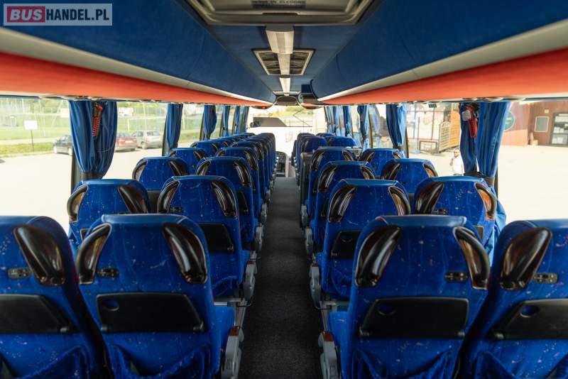 : video, WC, lodówka, caffebar, kabina sypialna, fotele odchylane, oświetlenie indywidualne, nawiewy dyszowe, siateczki, ABS, ASR, tempomat, retarder, telefon, nawigacja, CD, podnóżki, stoliczki, mikrofon, klimatyzacja, radio, sejf, regulacja wysokości nadwozia, centralny zamek, podwójne szyby boczne, wspomaganie kierownicy, elektryczne lusterka, aluminiowe felgi, fotele odchylane i rozsuwane, DVD, ogrzewanie stacjonarne, hak holowniczy, ESP