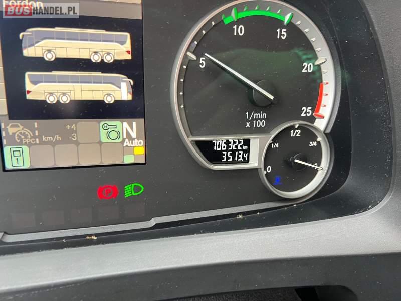 : video, WC, lodówka, caffebar, oświetlenie indywidualne, nawiewy dyszowe, siateczki, ABS, ASR, tempomat, retarder, CD, podnóżki, stoliczki, mikrofon, klimatyzacja, radio, regulacja wysokości nadwozia, centralny zamek, podwójne szyby boczne, wspomaganie kierownicy, elektryczne lusterka, fotele odchylane i rozsuwane, DVD, ogrzewanie stacjonarne, ESP