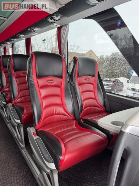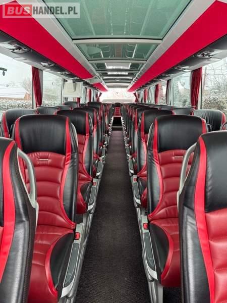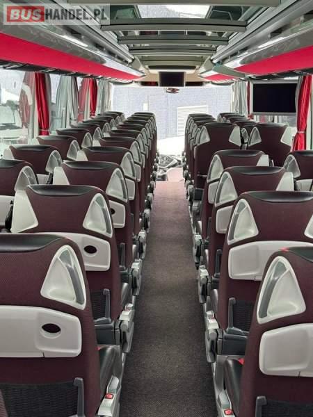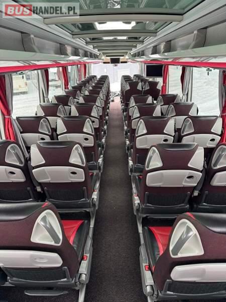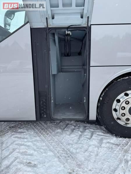 : WC, lodówka, kabina sypialna, oświetlenie indywidualne, nawiewy dyszowe, siateczki, ABS, ASR, tempomat, retarder, podnóżki, stoliczki, mikrofon, klimatyzacja, radio, sejf, regulacja wysokości nadwozia, centralny zamek, podwójne szyby boczne, wspomaganie kierownicy, elektryczne lusterka, aluminiowe felgi, fotele odchylane i rozsuwane, DVD, ogrzewanie stacjonarne, ESP