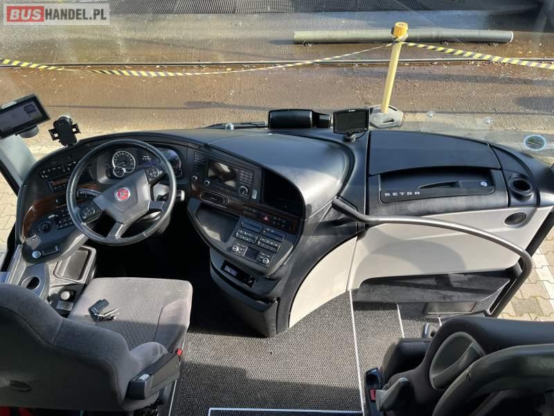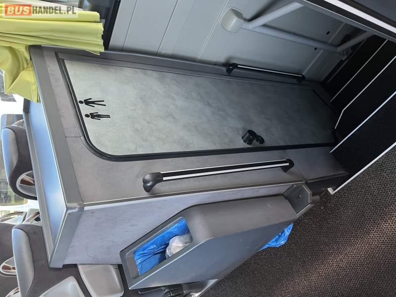 : klimatyzacja, WC, lodówka, caffebar, oświetlenie indywidualne, nawiewy dyszowe, fotele odchylane, podnóżki, siateczki, ABS, ASR, tempomat, retarder, nawigacja, CD, mikrofon, radio, fotele odchylane i rozsuwane, regulacja wysokości nadwozia, centralny zamek, podwójne szyby boczne, wspomaganie kierownicy, aluminiowe felgi, elektryczne lusterka, ogrzewanie stacjonarne, DVD, ESP