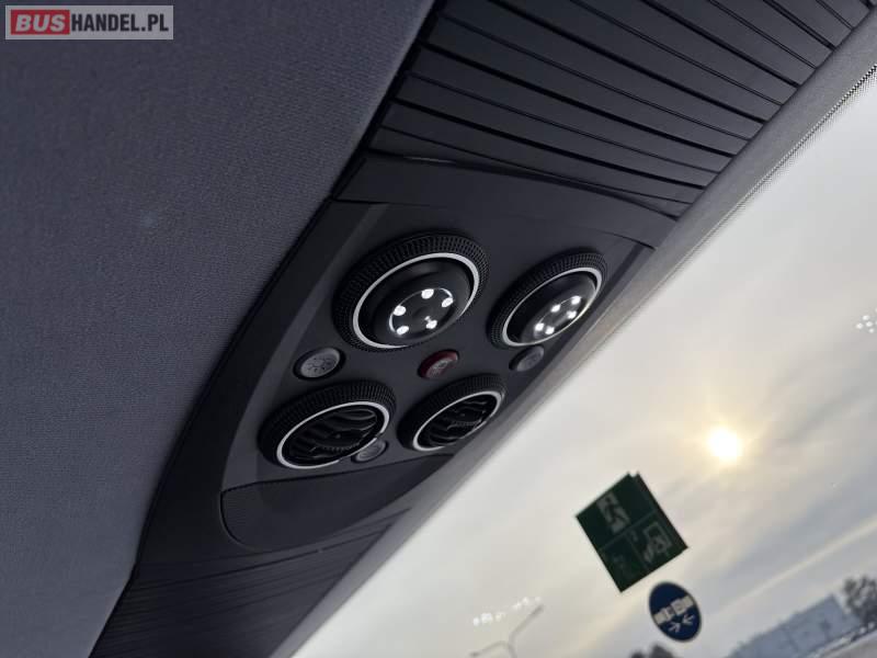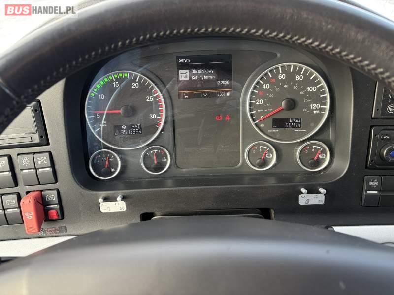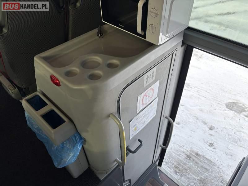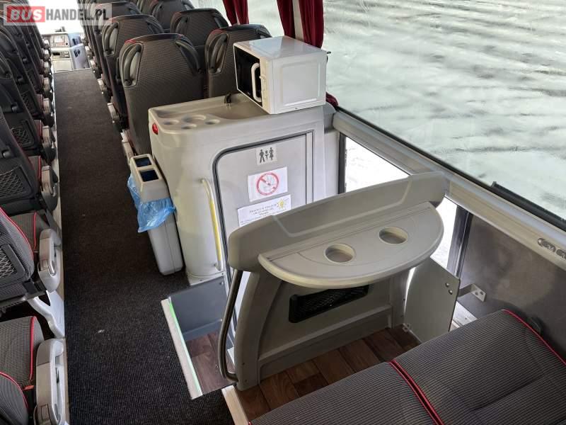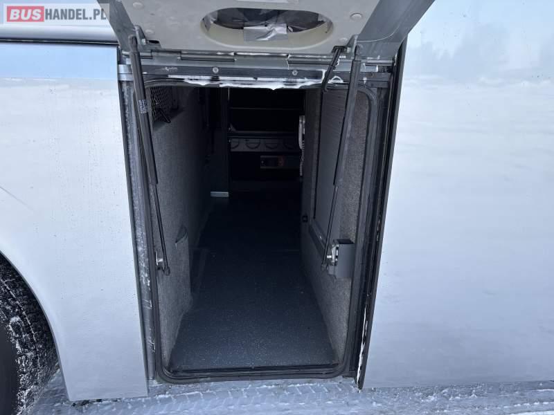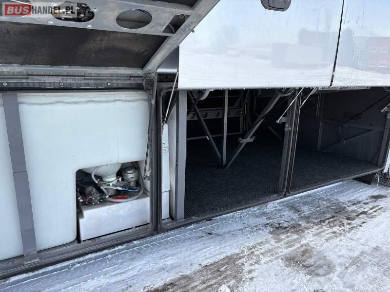 : WC, lodówka, kabina sypialna, oświetlenie indywidualne, nawiewy dyszowe, siateczki, ABS, ASR, tempomat, retarder, nawigacja, CD, podnóżki, stoliczki, mikrofon, klimatyzacja, radio, kuchenka mikrofalowa, sejf, regulacja wysokości nadwozia, centralny zamek, podwójne szyby boczne, wspomaganie kierownicy, elektryczne lusterka, aluminiowe felgi, fotele odchylane i rozsuwane, DVD, ogrzewanie stacjonarne, hak holowniczy, ESP