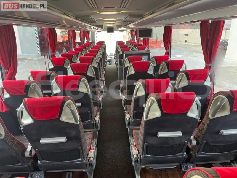 : WC, lodówka, fotele odchylane, ABS, ASR, retarder, CD, podnóżki, mikrofon, klimatyzacja, radio, DVD, ogrzewanie stacjonarne