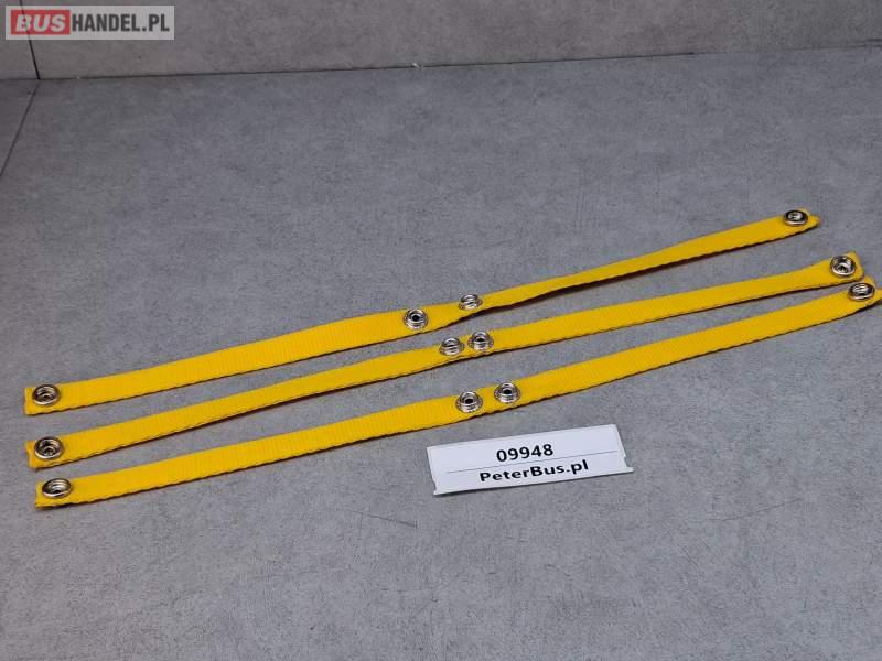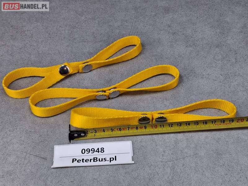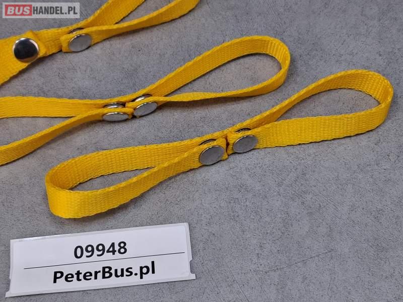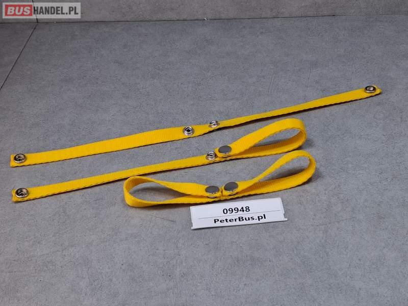 Zapinki, obejmy, uchwyty do zasłon autobusowych - PODWÓJNE - na dwie zasłony, kolor żółty - PODWÓJNE - na dwie zasłony kolor żółty - NOWE - - WYTRZYMAŁE - zapinane mocowane do słupka autobusu na wkręt przez otwór w zapięciu Sprzedający: