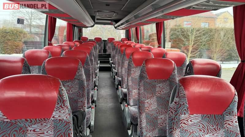 : lodówka, fotele odchylane, oświetlenie indywidualne, nawiewy dyszowe, siateczki, ABS, ASR, tempomat, retarder, podnóżki, stoliczki, mikrofon, klimatyzacja, radio, centralny zamek, podwójne szyby boczne, wspomaganie kierownicy, elektryczne lusterka, ogrzewanie stacjonarne