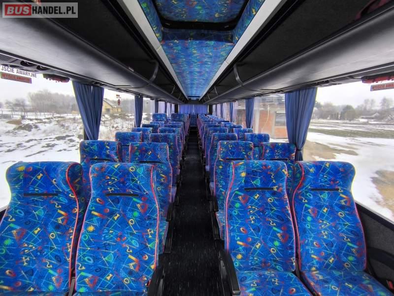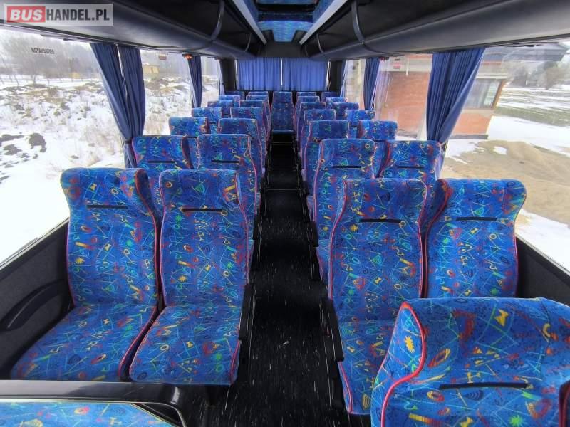 : video, lodówka, fotele odchylane, oświetlenie indywidualne, nawiewy dyszowe, ABS, retarder, CD, podnóżki, mikrofon, klimatyzacja, radio, regulacja wysokości nadwozia, podwójne szyby boczne, wspomaganie kierownicy, elektryczne lusterka
