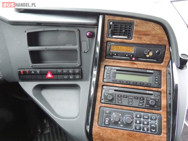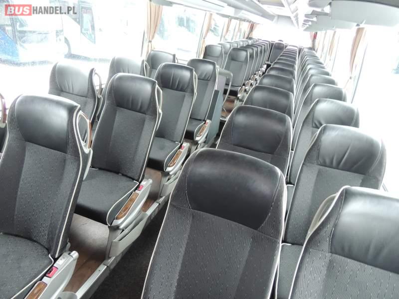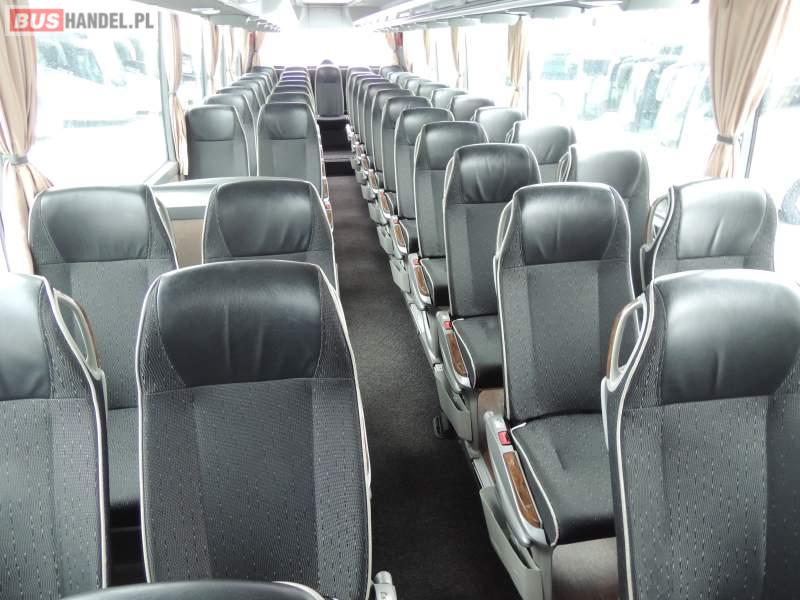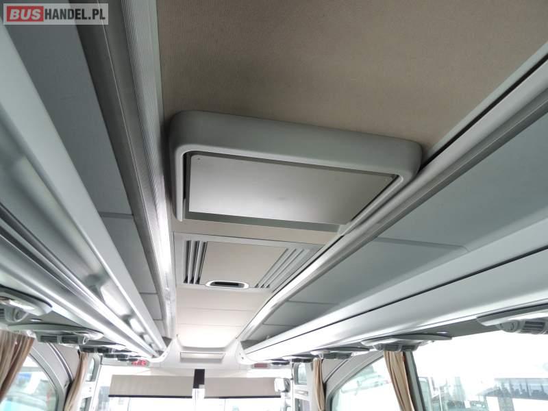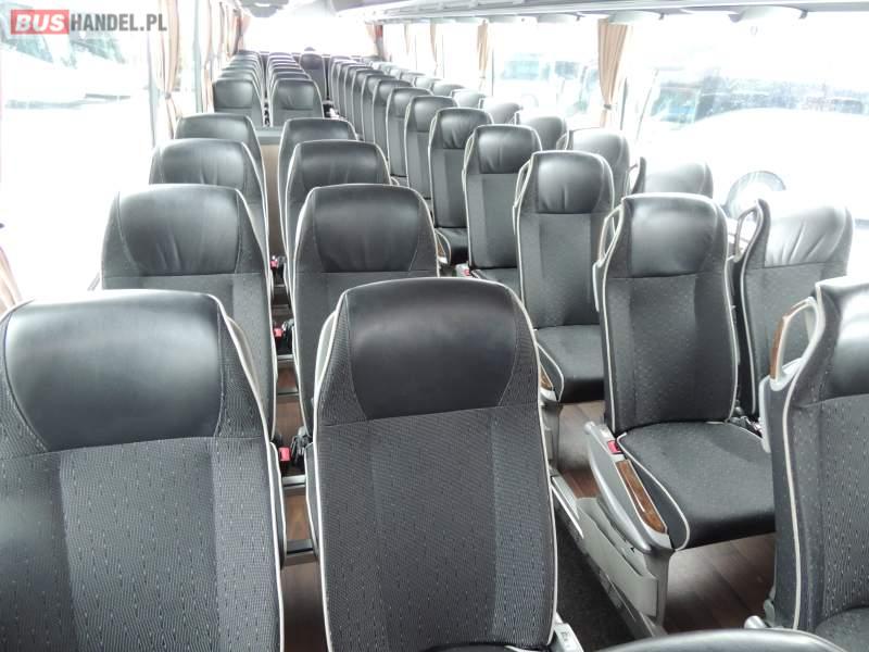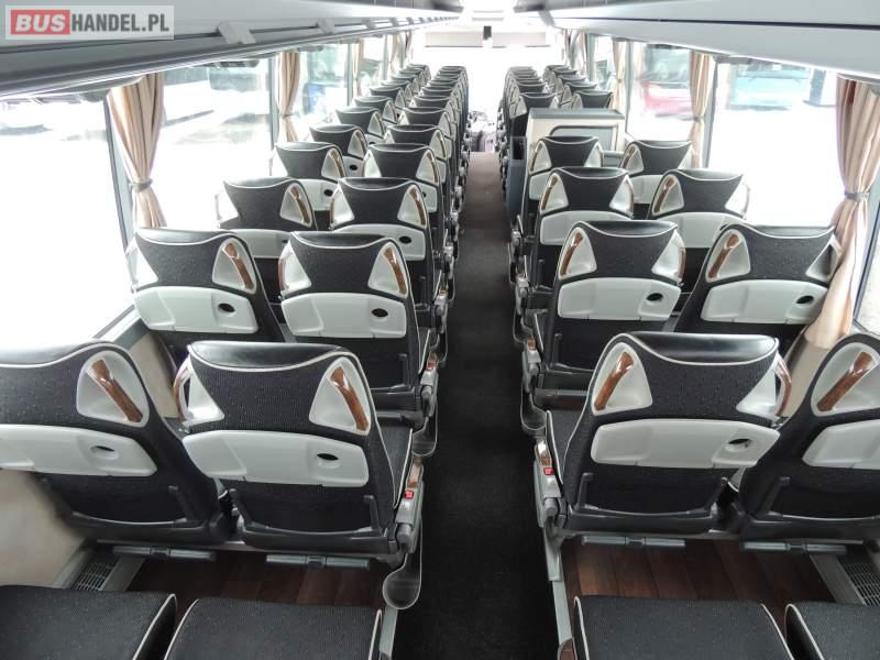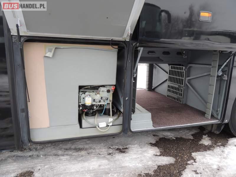 : video, WC, lodówka, oświetlenie indywidualne, nawiewy dyszowe, ABS, ASR, tempomat, retarder, CD, podnóżki, klimatyzacja, radio, regulacja wysokości nadwozia, centralny zamek, podwójne szyby boczne, wspomaganie kierownicy, elektryczne lusterka, fotele odchylane i rozsuwane, DVD, ogrzewanie stacjonarne, ESP