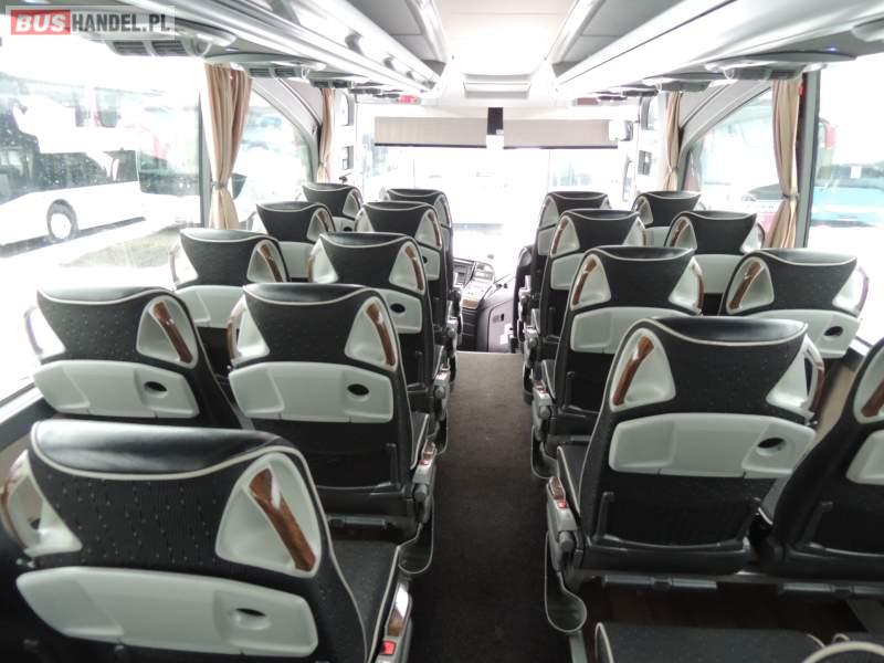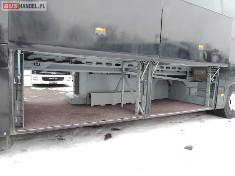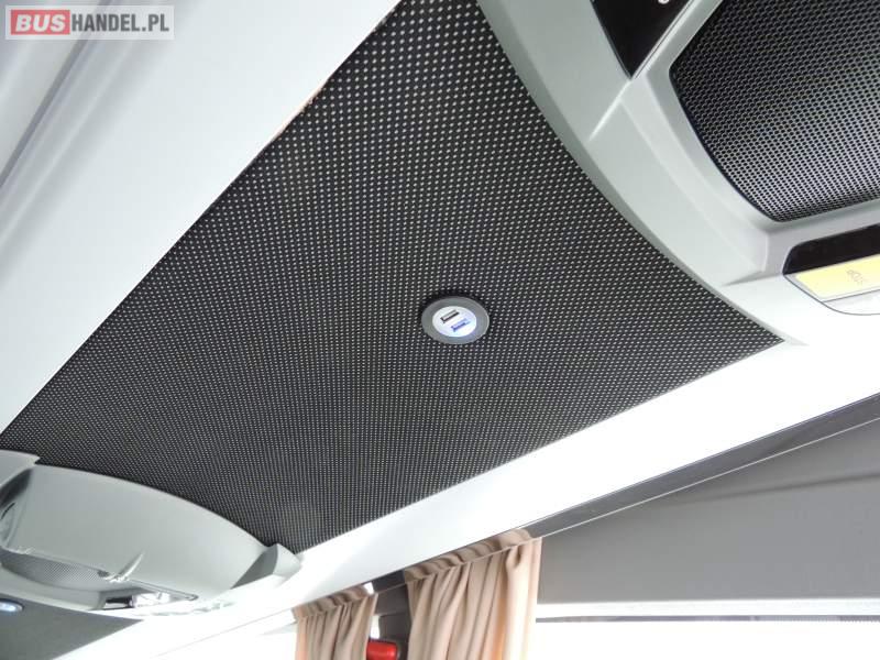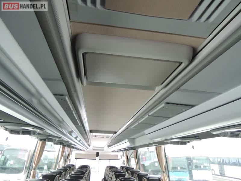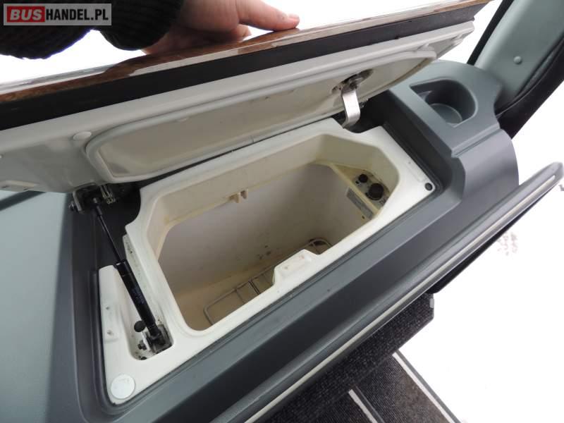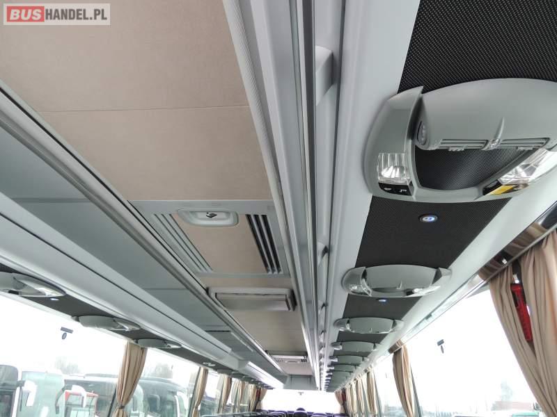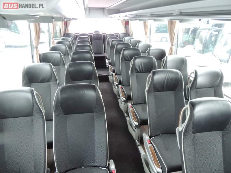 : video, WC, lodówka, oświetlenie indywidualne, nawiewy dyszowe, ABS, ASR, tempomat, retarder, CD, podnóżki, klimatyzacja, radio, regulacja wysokości nadwozia, centralny zamek, podwójne szyby boczne, wspomaganie kierownicy, elektryczne lusterka, fotele odchylane i rozsuwane, DVD, ogrzewanie stacjonarne, ESP