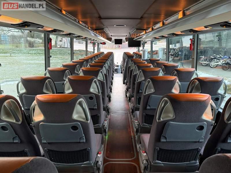 : video, WC, lodówka, caffebar, kabina sypialna, oświetlenie indywidualne, nawiewy dyszowe, siateczki, ABS, ASR, tempomat, retarder, CD, podnóżki, stoliczki, mikrofon, klimatyzacja, radio, regulacja wysokości nadwozia, podwójne szyby boczne, wspomaganie kierownicy, elektryczne lusterka, fotele odchylane i rozsuwane, DVD, ogrzewanie stacjonarne, ESP