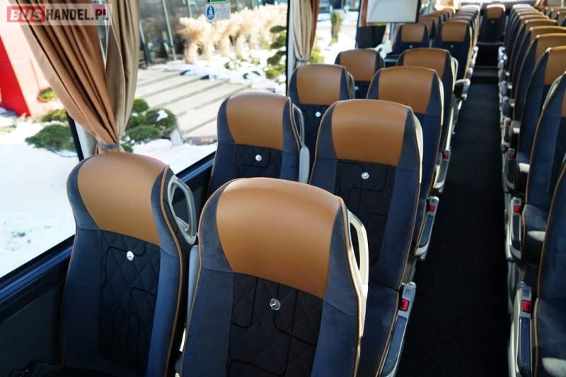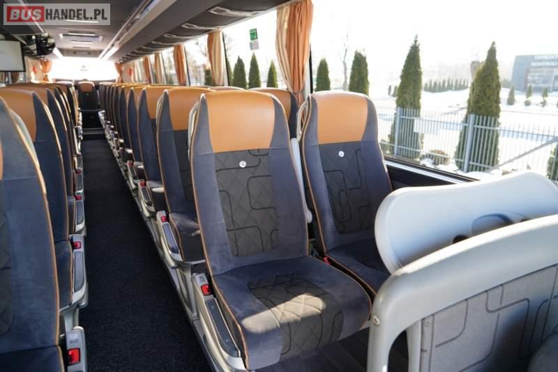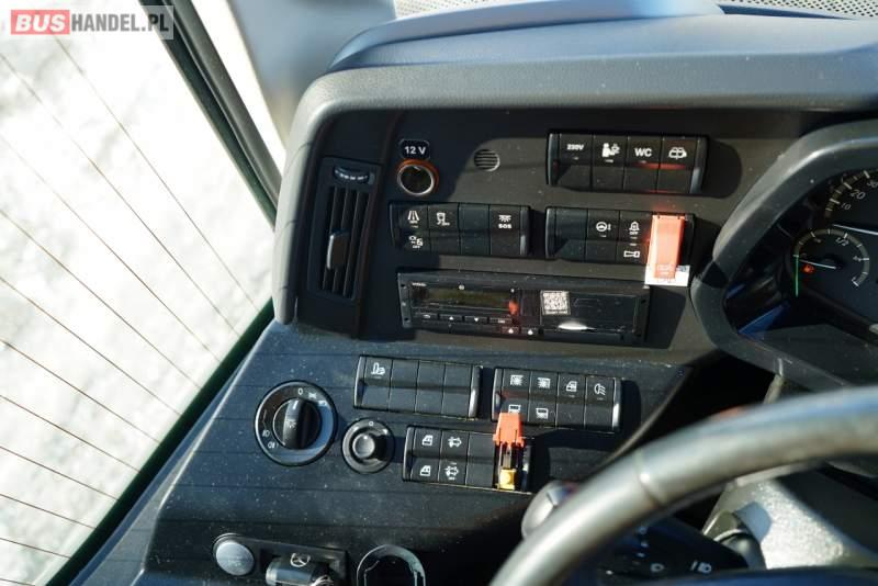 : WC, lodówka, oświetlenie indywidualne, nawiewy dyszowe, ABS, tempomat, retarder, CD, mikrofon, klimatyzacja, radio, fotele odchylane i rozsuwane, DVD