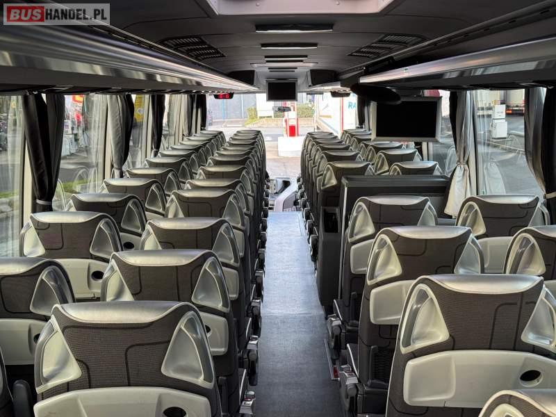 : WC, lodówka, kabina sypialna, fotele odchylane, oświetlenie indywidualne, nawiewy dyszowe, siateczki, ABS, ASR, tempomat, retarder, podnóżki, stoliczki, mikrofon, klimatyzacja, radio, sejf, regulacja wysokości nadwozia, centralny zamek, podwójne szyby boczne, wspomaganie kierownicy, elektryczne lusterka, aluminiowe felgi, fotele odchylane i rozsuwane, DVD, ogrzewanie stacjonarne, ESP