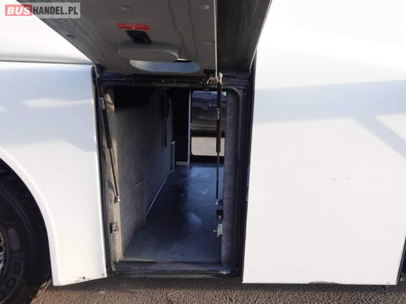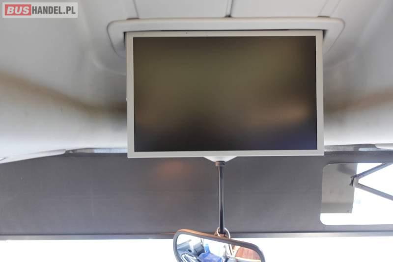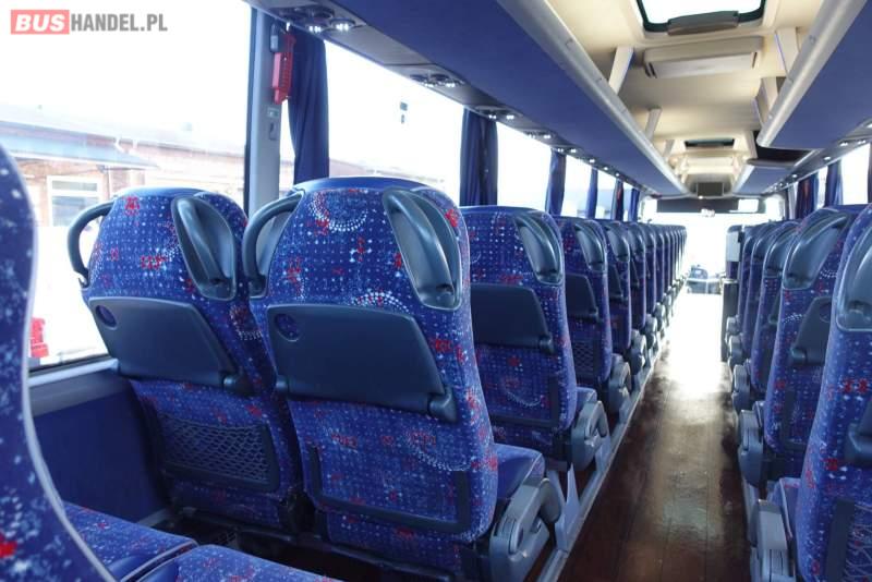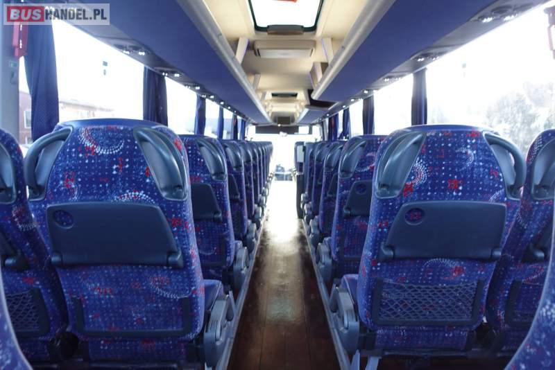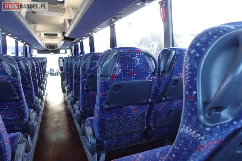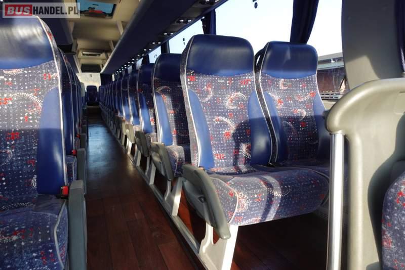: video, WC, lodówka, kabina sypialna, fotele odchylane, oświetlenie indywidualne, nawiewy dyszowe, siateczki, ABS, ASR, tempomat, retarder, nawigacja, CD, podnóżki, stoliczki, mikrofon, klimatyzacja, radio, regulacja wysokości nadwozia, centralny zamek, podwójne szyby boczne, wspomaganie kierownicy, elektryczne lusterka, DVD, ogrzewanie stacjonarne, ESP