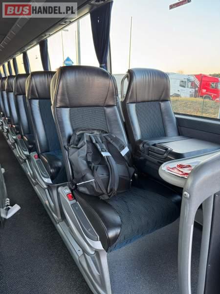 : WC, lodówka, oświetlenie indywidualne, nawiewy dyszowe, siateczki, ABS, ASR, tempomat, retarder, podnóżki, stoliczki, mikrofon, klimatyzacja, radio, sejf, regulacja wysokości nadwozia, centralny zamek, podwójne szyby boczne, wspomaganie kierownicy, elektryczne lusterka, fotele odchylane i rozsuwane, DVD, ogrzewanie stacjonarne, ESP