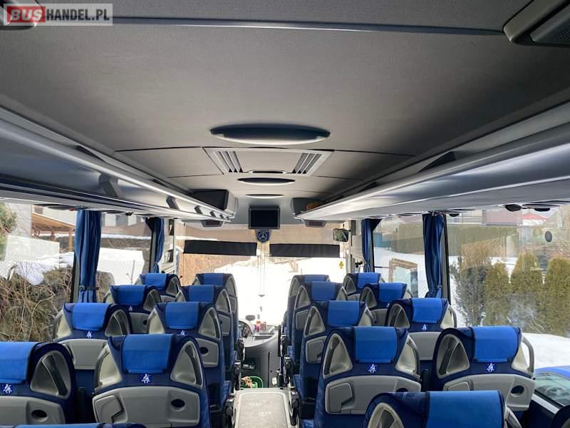 : video, WC, lodówka, caffebar, kabina sypialna, oświetlenie indywidualne, nawiewy dyszowe, siateczki, ABS, ASR, tempomat, retarder, CD, podnóżki, stoliczki, mikrofon, klimatyzacja, radio, regulacja wysokości nadwozia, centralny zamek, podwójne szyby boczne, wspomaganie kierownicy, elektryczne lusterka, aluminiowe felgi, fotele odchylane i rozsuwane, DVD, ogrzewanie stacjonarne, ESP