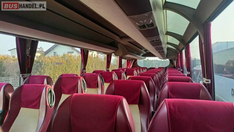 : lodówka, fotele odchylane, nawiewy dyszowe, retarder, CD, mikrofon, klimatyzacja, radio, wspomaganie kierownicy, DVD, ogrzewanie stacjonarne