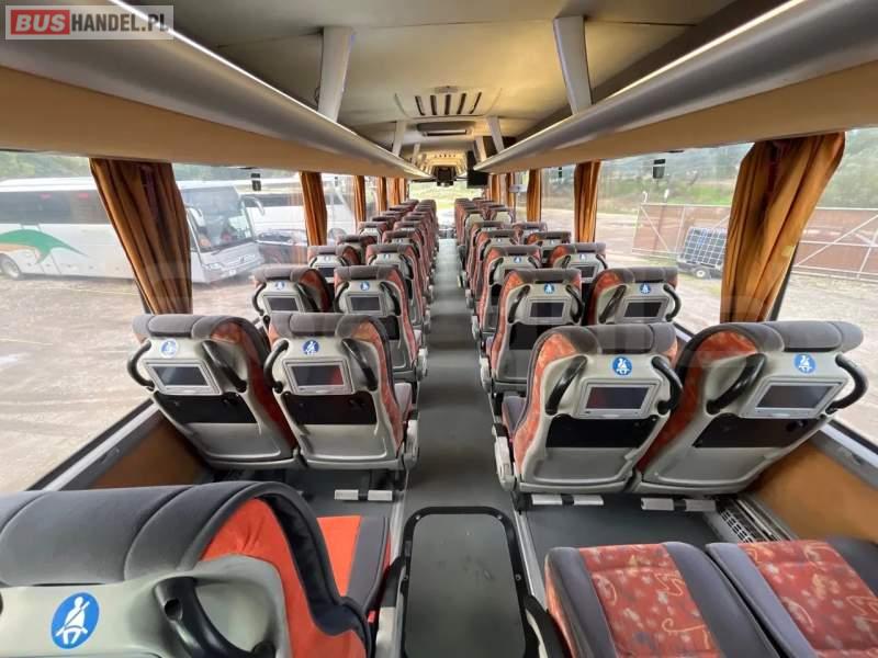 : lodówka, fotele odchylane, ABS, ASR, retarder, CD, podnóżki, stoliczki, mikrofon, klimatyzacja, radio, fotele odchylane i rozsuwane, DVD, ogrzewanie stacjonarne