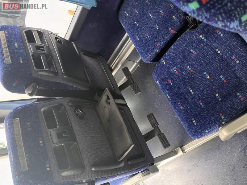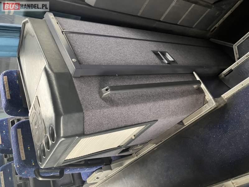 : video, WC, caffebar, fotele odchylane, oświetlenie indywidualne, nawiewy dyszowe, siateczki, ABS, ASR, tempomat, retarder, telefon, CD, podnóżki, stoliczki, mikrofon, klimatyzacja, radio, regulacja wysokości nadwozia, centralny zamek, podwójne szyby boczne, wspomaganie kierownicy, elektryczne lusterka, DVD, ogrzewanie stacjonarne, ESP