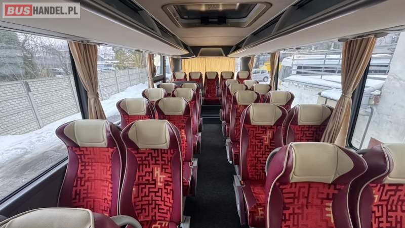 : video, lodówka, fotele odchylane, oświetlenie indywidualne, nawiewy dyszowe, siateczki, ABS, ASR, stoliczki, mikrofon, klimatyzacja, radio, podwójne szyby boczne, wspomaganie kierownicy, elektryczne lusterka, fotele odchylane i rozsuwane, DVD, ogrzewanie stacjonarne