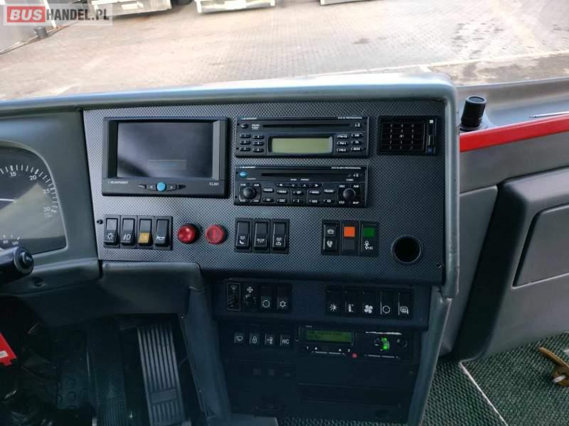 : video, WC, lodówka, caffebar, kabina sypialna, fotele odchylane, oświetlenie indywidualne, nawiewy dyszowe, siateczki, ABS, ASR, tempomat, retarder, CD, podnóżki, stoliczki, mikrofon, klimatyzacja, radio, sejf, regulacja wysokości nadwozia, centralny zamek, podwójne szyby boczne, wspomaganie kierownicy, elektryczne lusterka, aluminiowe felgi, fotele odchylane i rozsuwane, DVD, ogrzewanie stacjonarne, ESP