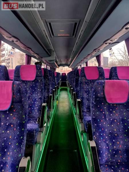 : WC, lodówka, caffebar, kabina sypialna, oświetlenie indywidualne, tempomat, retarder, mikrofon, klimatyzacja, DVD