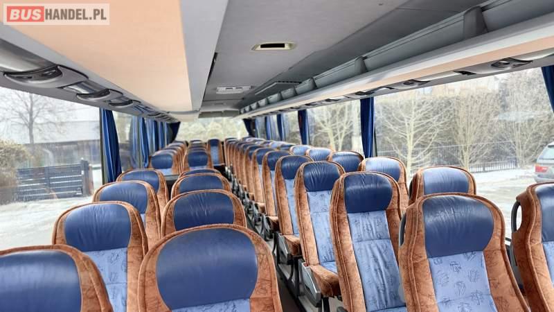 : WC, lodówka, caffebar, kabina sypialna, fotele odchylane, oświetlenie indywidualne, nawiewy dyszowe, siateczki, ABS, ASR, tempomat, retarder, podnóżki, stoliczki, mikrofon, klimatyzacja, radio, regulacja wysokości nadwozia, centralny zamek, podwójne szyby boczne, wspomaganie kierownicy, elektryczne lusterka, DVD, ogrzewanie stacjonarne, ESP