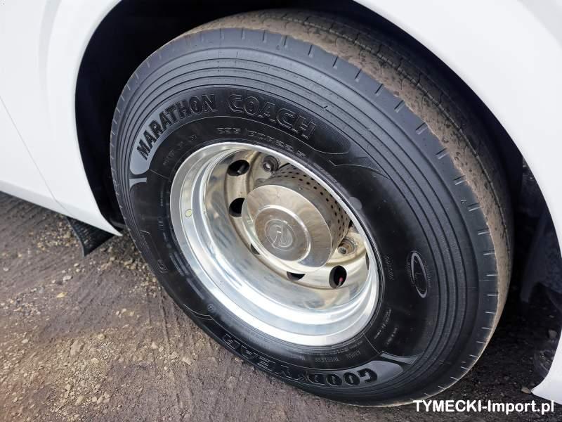 : video, WC, lodówka, kabina sypialna, fotele odchylane, oświetlenie indywidualne, nawiewy dyszowe, siateczki, ABS, ASR, tempomat, retarder, telefon, CD, podnóżki, stoliczki, mikrofon, klimatyzacja, radio, rampa dla inwalidów, sejf, regulacja wysokości nadwozia, centralny zamek, podwójne szyby boczne, wspomaganie kierownicy, elektryczne lusterka, aluminiowe felgi, DVD, ogrzewanie stacjonarne, ESP