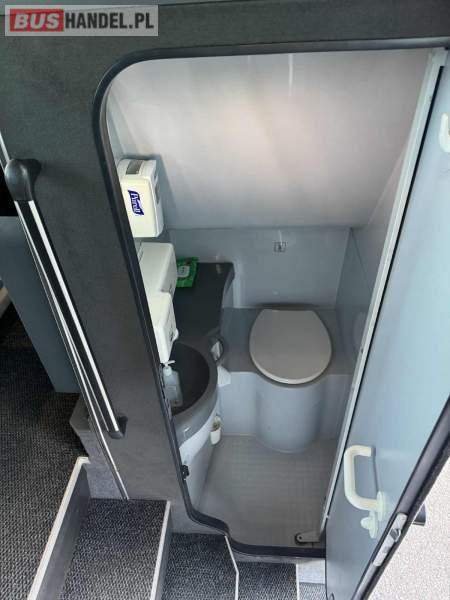 : WC, lodówka, oświetlenie indywidualne, nawiewy dyszowe, siateczki, ABS, ASR, tempomat, retarder, podnóżki, stoliczki, mikrofon, klimatyzacja, radio, sejf, regulacja wysokości nadwozia, centralny zamek, podwójne szyby boczne, wspomaganie kierownicy, elektryczne lusterka, fotele odchylane i rozsuwane, DVD, ogrzewanie stacjonarne, ESP