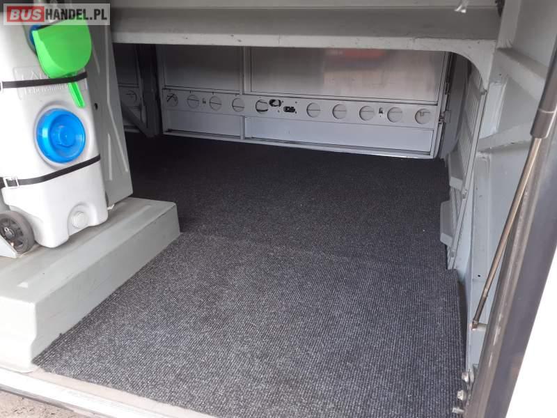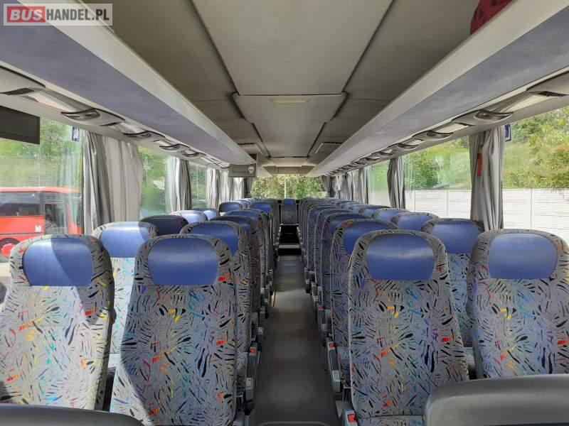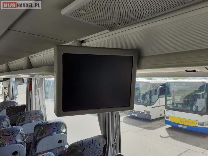 : klimatyzacja, video, WC, lodówka, caffebar, kabina sypialna, oświetlenie indywidualne, nawiewy dyszowe, podnóżki, stoliczki, siateczki, ABS, ASR, tempomat, retarder, mikrofon, radio, centralny zamek, podwójne szyby boczne, wspomaganie kierownicy, elektryczne lusterka, DVD, ESP