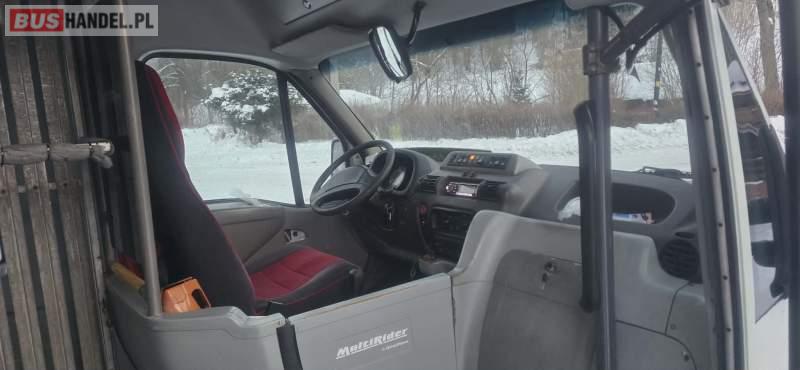 Omninova Multirider – 2001 r. | 25 miejsc | Niskopodłogowy | Rampa | Stan bardzo dobry Na sprzedaż Omninova Multirider przeznaczony do przewozu osób, w tym osób z niepełnosprawnościami. Pojazd pochodzi z wyprzedaży floty (sprzedaż w spadku). Dane techniczne: • Rok produkcji: 2001 • Silnik: 2. 8 TD, 130 KM (IVECO) • Podzespoły: Renault Master • Skrzynia biegów: manualna • Paliwo: diesel • Przebieg: oryginalny • Liczba właścicieli: 2 (1 w Polsce) Pojemność: • 25 miejsc łącznie • 9 miejsc siedzących • Niskopodłogowy • Rampa pod wózki inwalidzkie Wyposażenie i stan: • Klimatyzacja dachowa oraz klimatyzacja kierowcy • Pneumatyczne zawieszenie drzwi • Kompresor 12V • Odpala bez problemu nawet przy -27°C • Wszystko sprawne • Stan techniczny i wizualny: bardzo dobry Serwis: • Rozrząd wymieniony 30 tys. km temu • Olej silnikowy wymieniany co 10 tys. km • Regularnie serwisowany Opony: • Zimowe • Komplet letnich w cenie Dostępność: • Auto dostępne od zaraz Sprzedający: