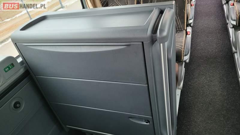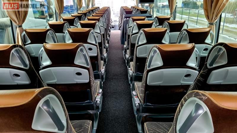 : video, WC, lodówka, caffebar, kabina sypialna, fotele odchylane, oświetlenie indywidualne, nawiewy dyszowe, siateczki, ABS, ASR, tempomat, retarder, nawigacja, CD, podnóżki, stoliczki, mikrofon, klimatyzacja, radio, sejf, regulacja wysokości nadwozia, centralny zamek, podwójne szyby boczne, wspomaganie kierownicy, elektryczne lusterka, fotele odchylane i rozsuwane, DVD, hak holowniczy, ESP
